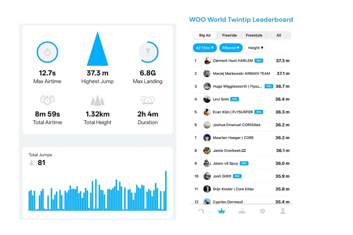 О WOO: Запущенный в 2013 году сенсор WOO является мировым стандартом для измерения прыжков в кайтбординге и вингфойлинге. Райдеры зафиксировали более 150 миллионов прыжков в рамках 2,7 миллиона сессий. С каждым новым мировым рекордом чествуют как атлета, так и команду разработчиков кайта за то, что они поднимают спорт на новый уровень.