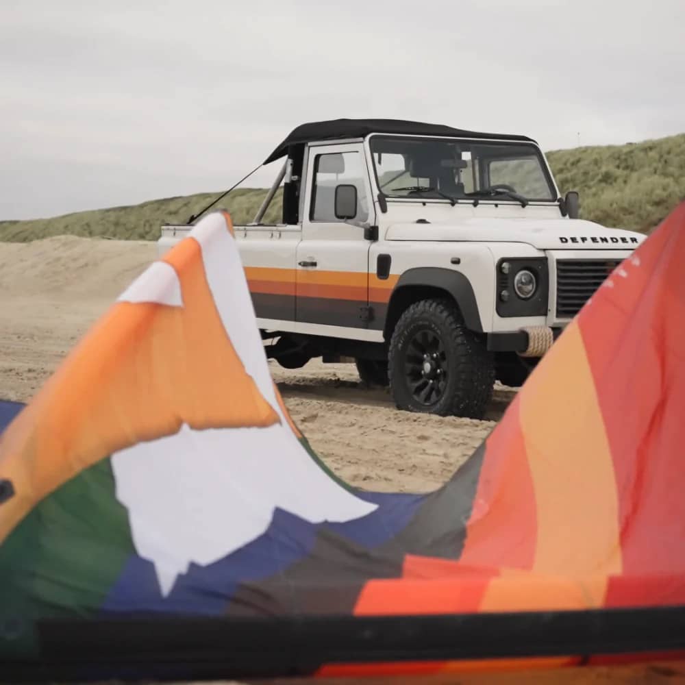 Член нашей семьи, Ремко ван Беммел, взял свой переделанный электрический Land Rover за пределы дорог — и в небо. Вдохновленный своей машиной, он создал индивидуальный Harlem Thrive кайт, который соответствует его стилю.